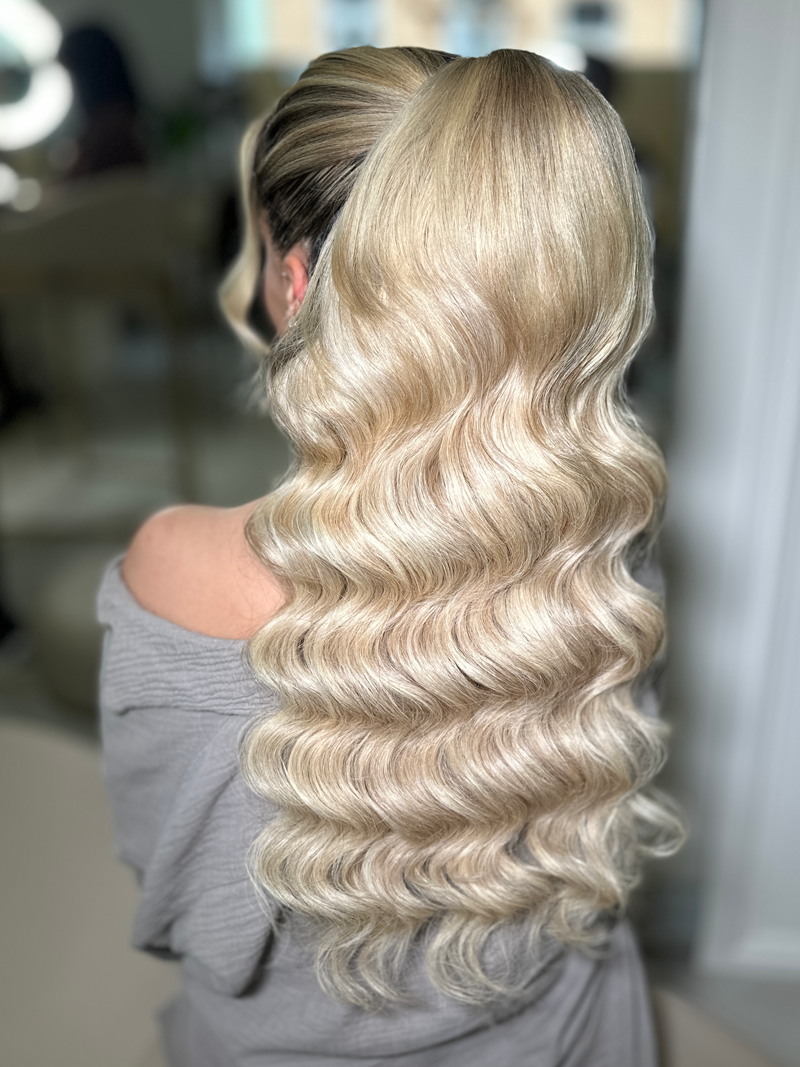 Hollywood Waves – oder Wasserwellen – sind superbeliebt bei unseren Kundinnen. Durch die häufige Praxis über die Jahre frisieren wir wunderschöne Wellen an allen Haartypen. Mit den Waves lassen sich wunderschöne und vielfältige Frisuren zaubern – offene oder gebundene mit kleineren oder größeren Wellen. Lass dich von uns beraten und dir zauberhafte Hollywood Waves frisieren!